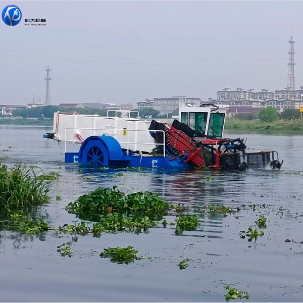 全自动水面保洁船发货至印尼,全自动水面保洁船也叫作割草船,芦苇收割船、水葫芦打捞船,用于收割打捞水面水草、水葫芦、水面垃圾等