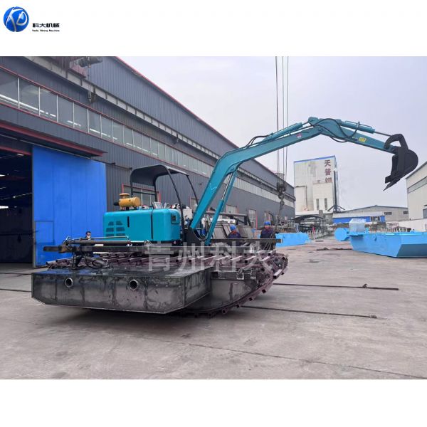 履带式水陆两栖挖掘机,履带式水陆两栖挖掘机是一种兼具陆地与水域作业能力的特种工程机械,通过独特的浮力设计和履带推进系统,可在沼泽、湿地、浅水区域及陆地等多种复杂环境中执行挖掘、清淤、疏浚等任务。